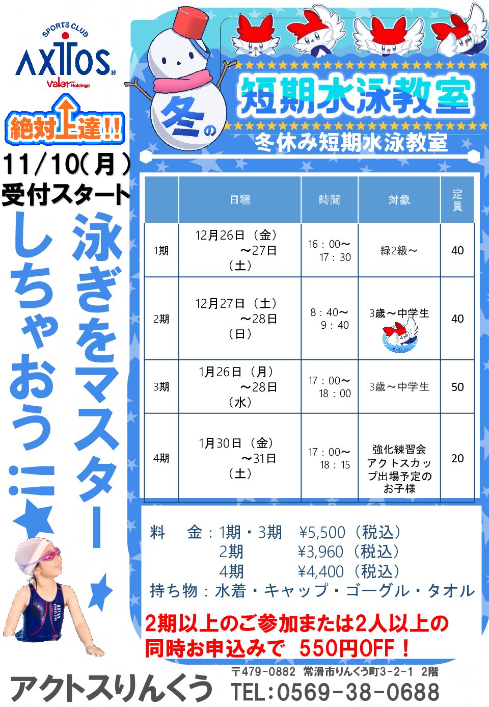 11月日程更新!スイミングスクール1日体験実施中!☆