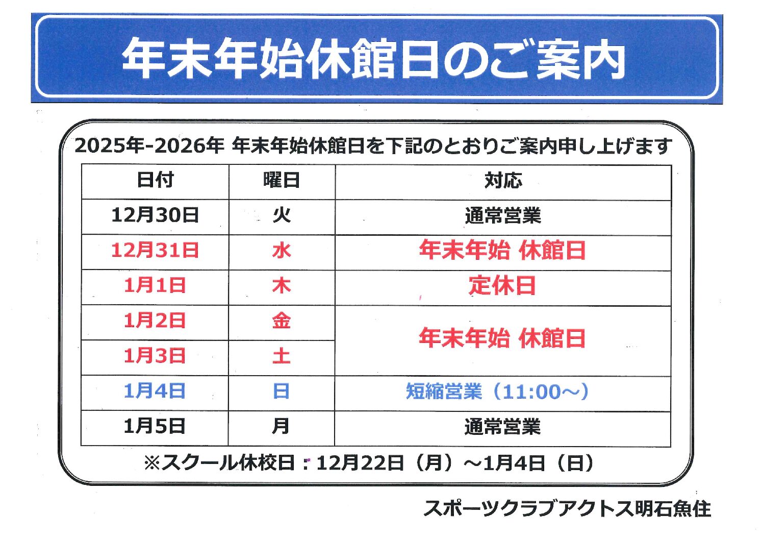 ・スポーツゾーンのご利用は営業終了時間の30分前迄 -