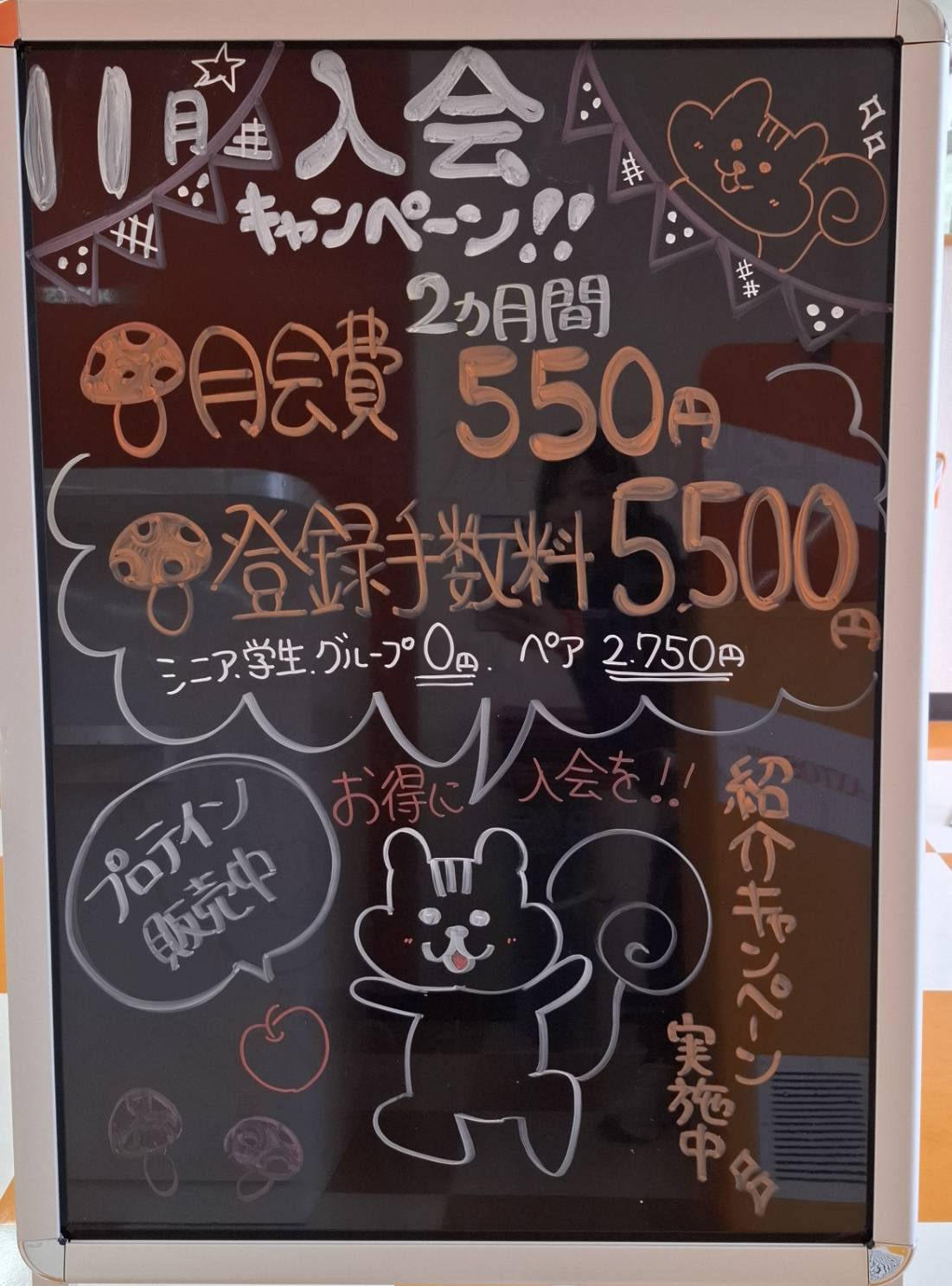 11月のご入会で【2ヶ月間、3300円の月会費がなんと550円!】