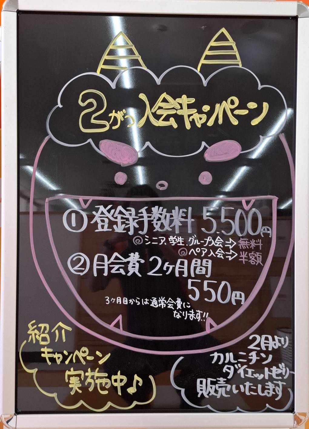 2月のご入会で【1ヶ月間、3850円の月会費がなんと 初月550円 2ヶ月目550円!】