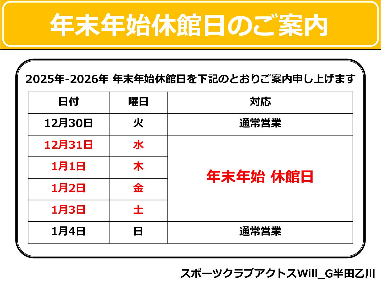 運動しやすい衣服、シューズ、タオル等はご準備ください。※休館日は体験いただけません。