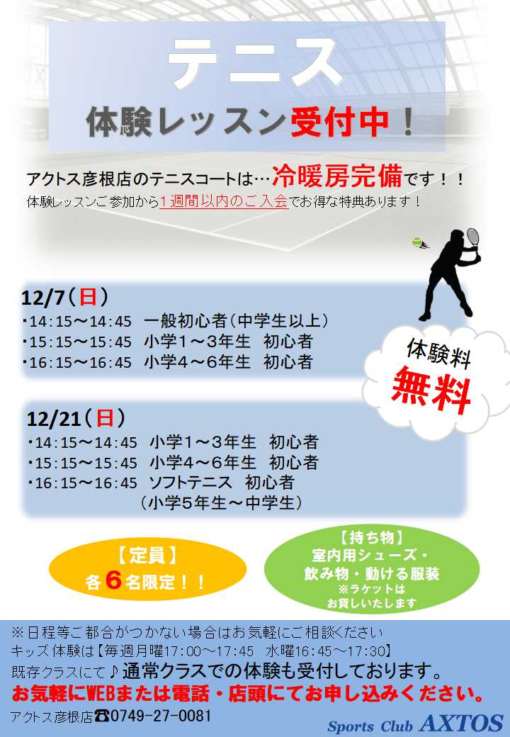 完全室内冷房完備!! アクトスでは、健康運動として 『生涯楽しめるテニス』 をご提供しています!