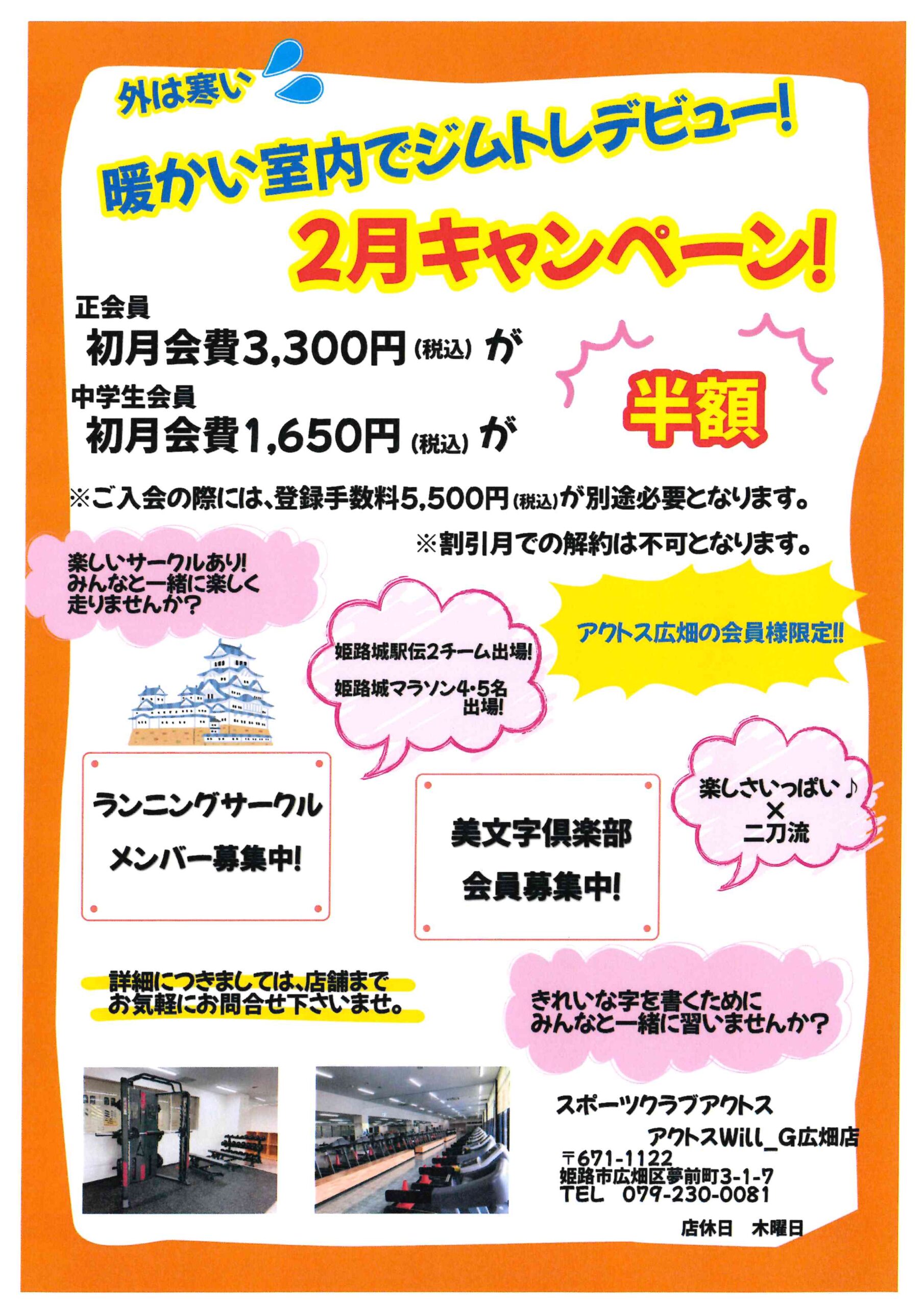 運動しやすい衣服、シューズ、タオル等はご準備ください。※休館日は体験いただけません。