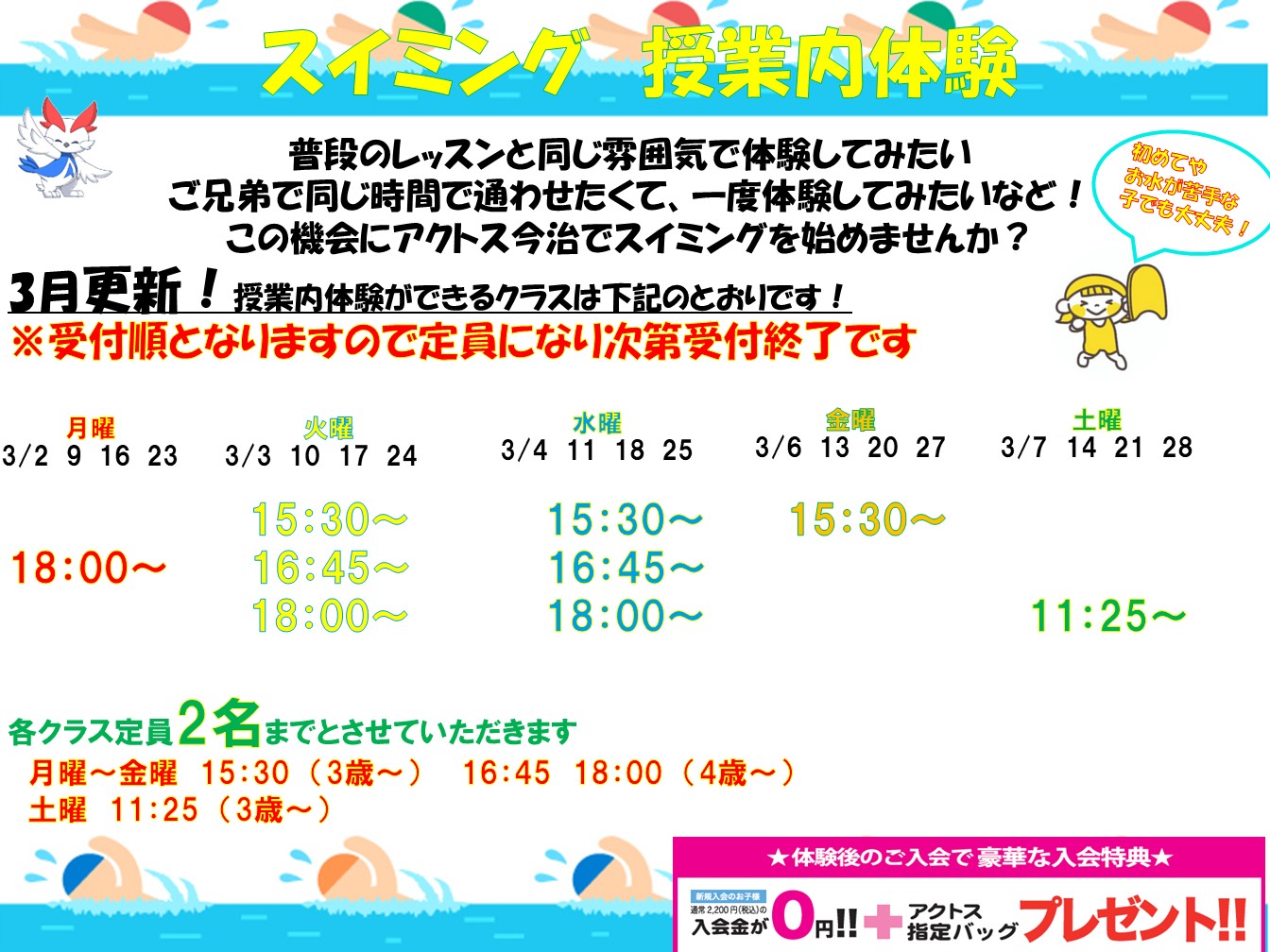 - ※クラスの時間帯・空き状況については、店舗までお問合せください
