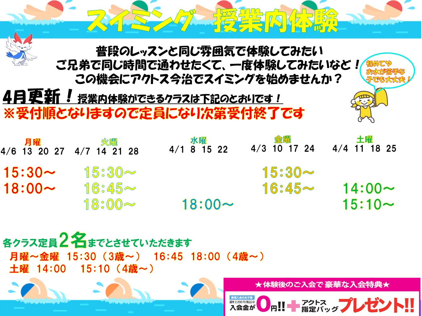 - ※クラスの時間帯・空き状況については、店舗までお問合せください