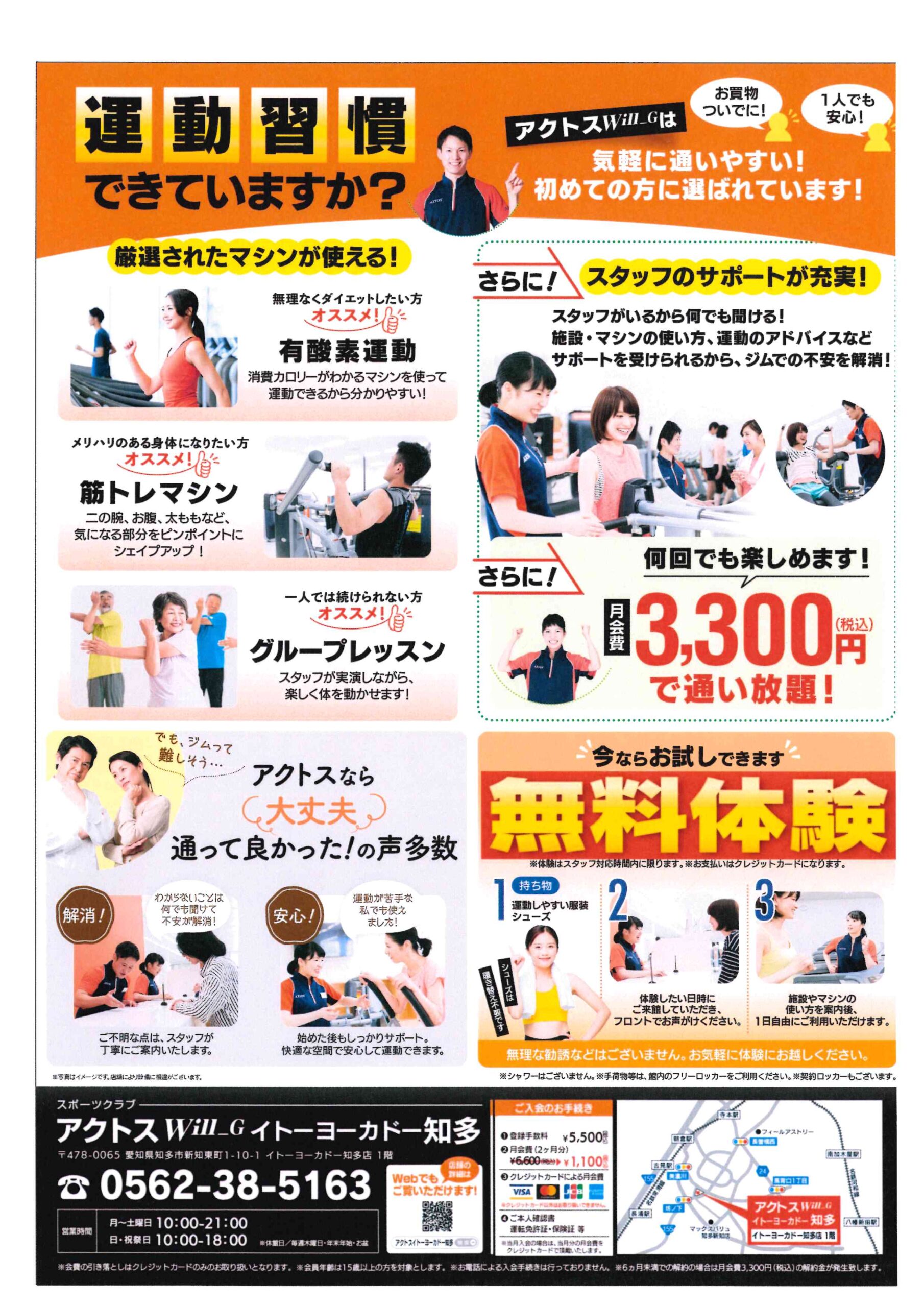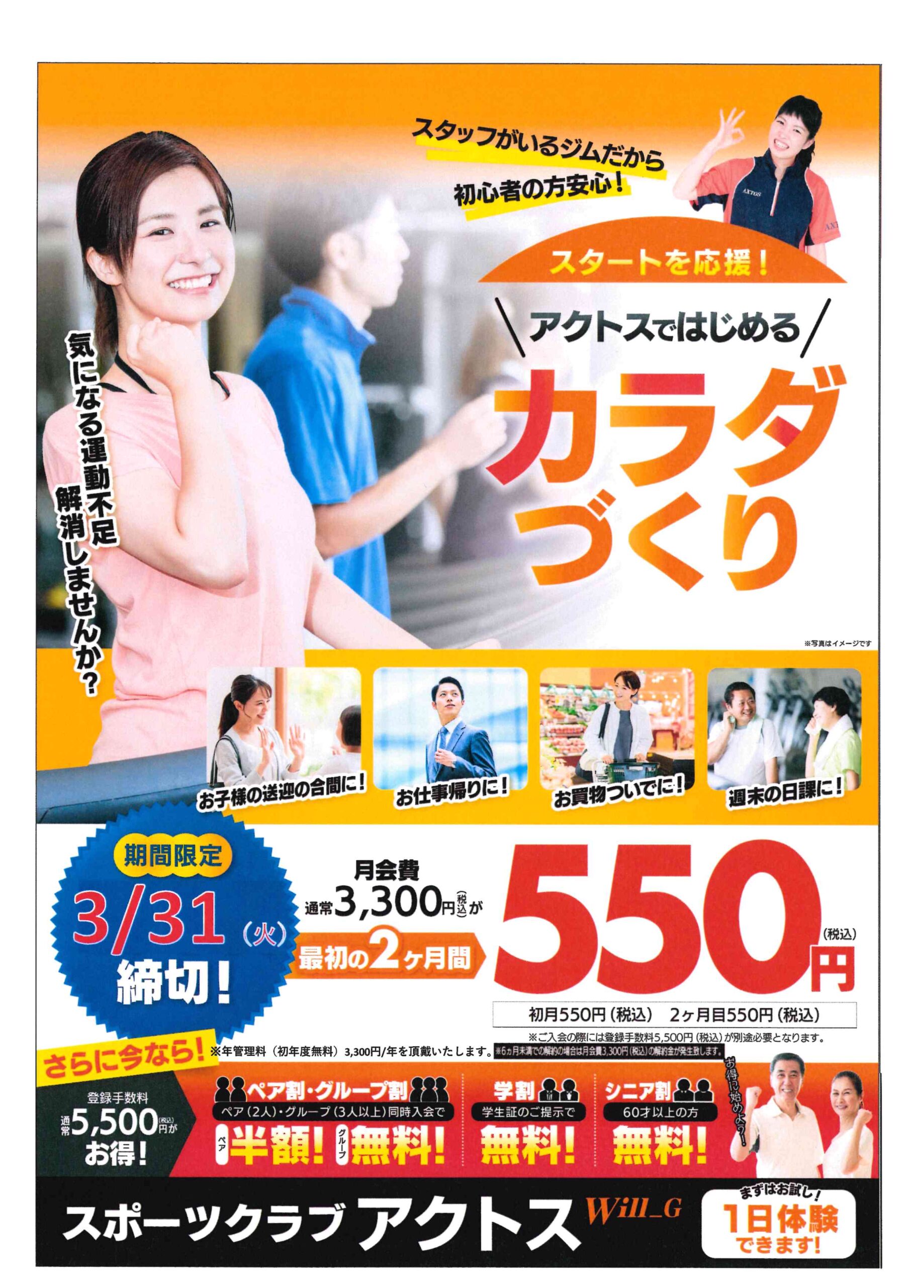 - ◆アクトスをご利用の場合 4,400円(税込)/回