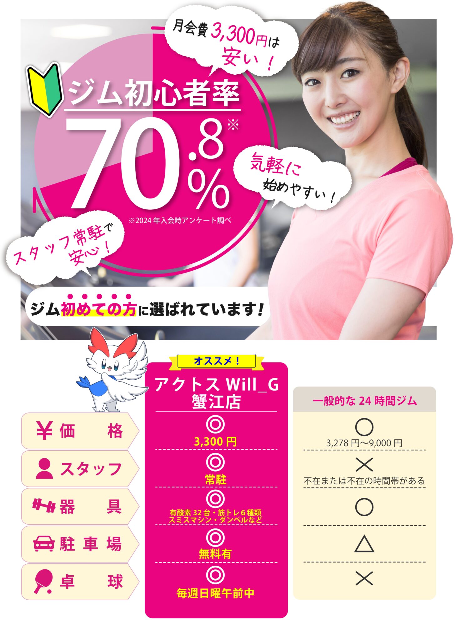 インストラクターが常駐で安心サポート!また、マシンの使い方や運動方法をご案内する 「ガイダンス」を毎日無料で実施していますので初心者の方も安心です。