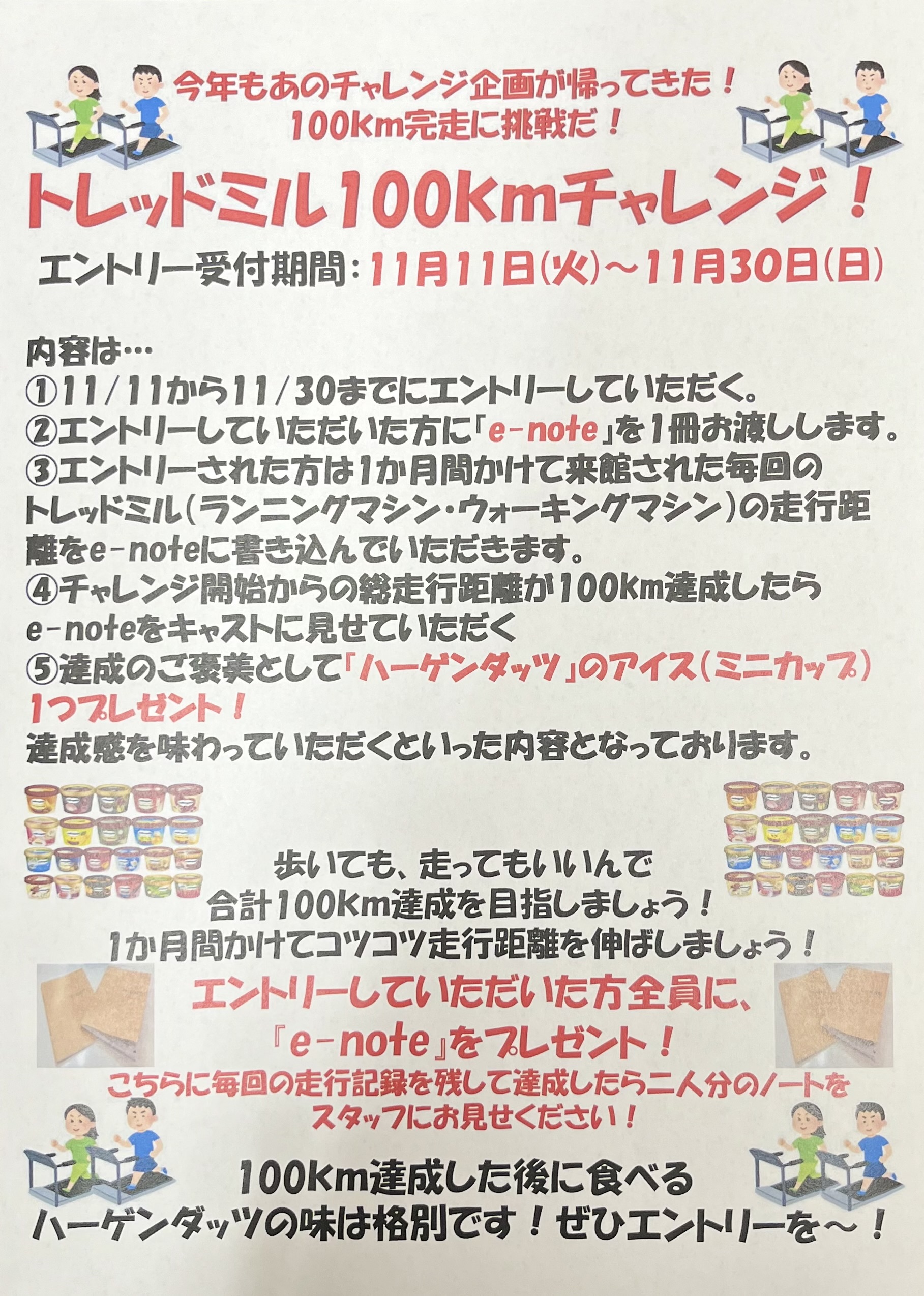 運動しやすい衣服、シューズ、タオル等はご準備ください。※休館日は体験いただけません。