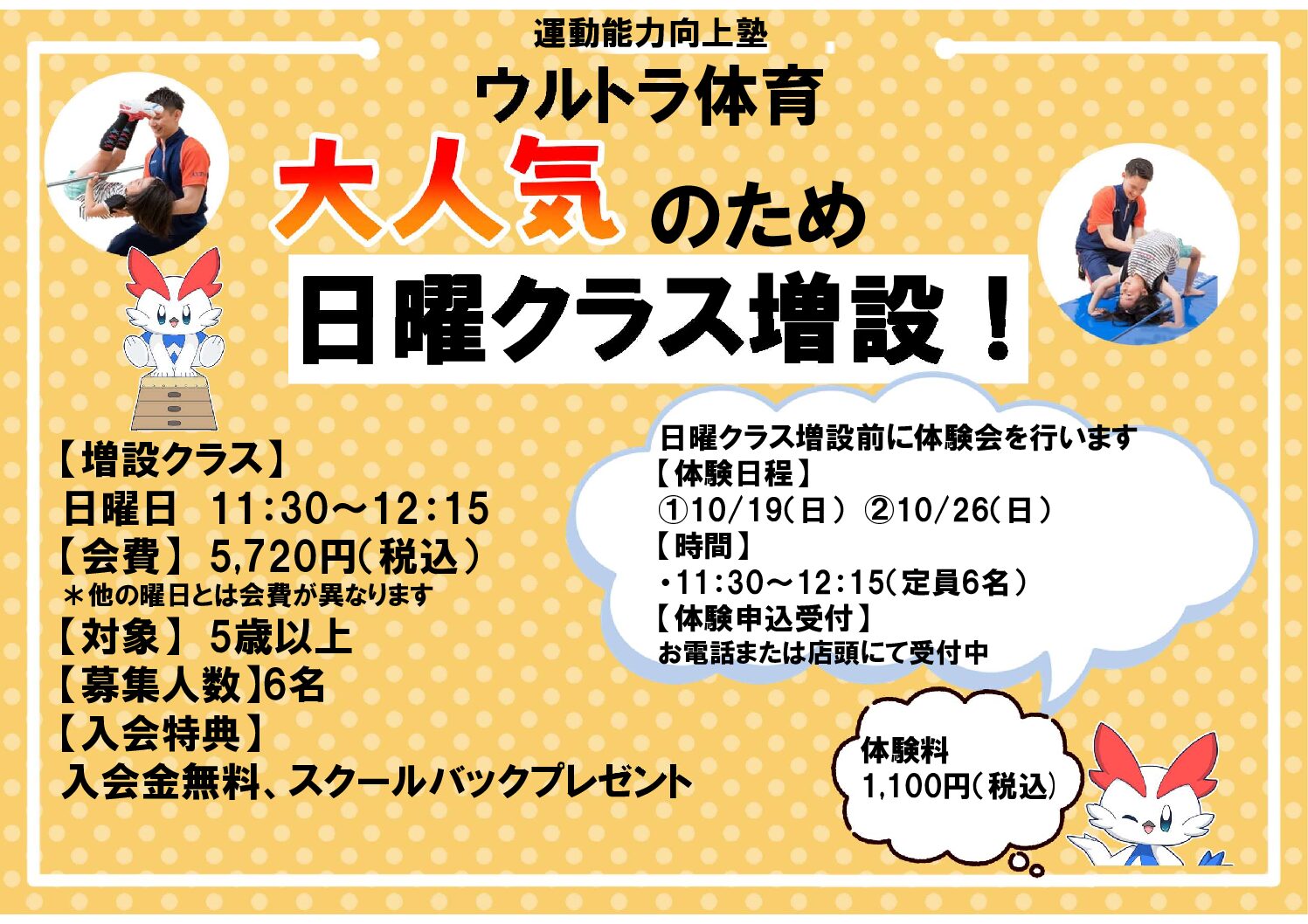 - 年齢:年中~小学校6年生まで
