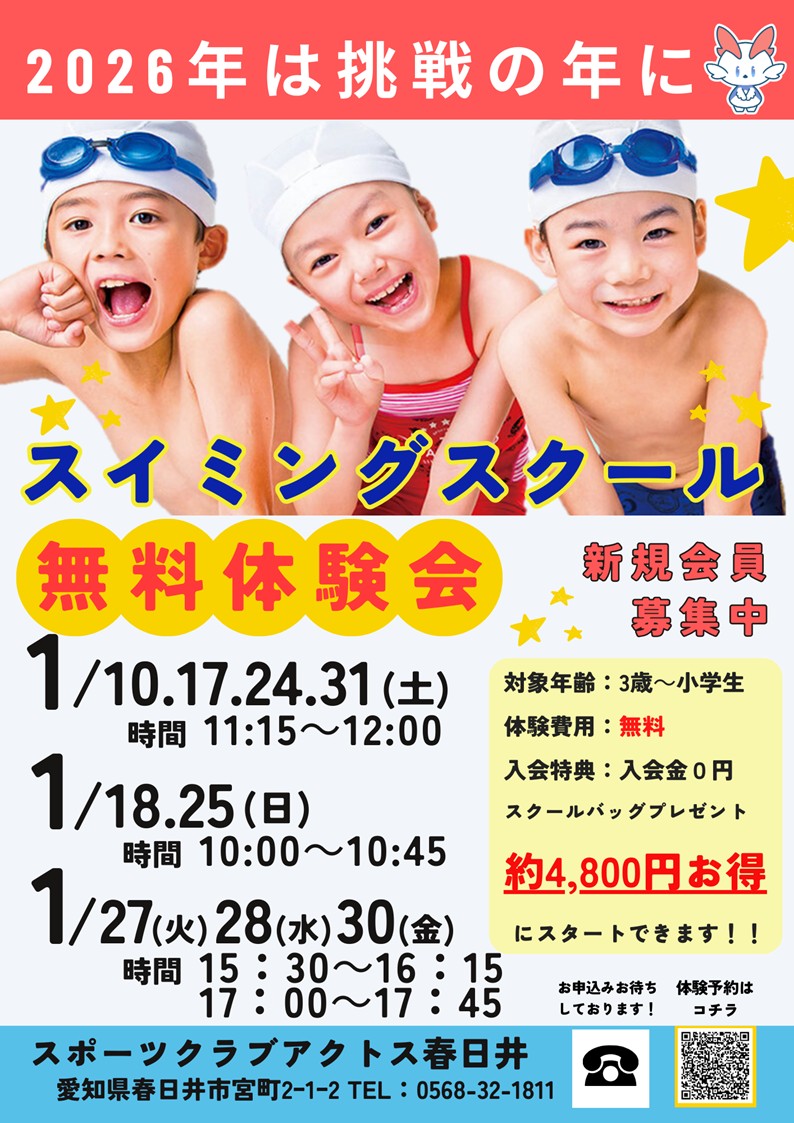 アクトスのスイミングスクールは、 定員制のクラス編成で、笑顔と楽しさがあふれるレッスンが魅力です。