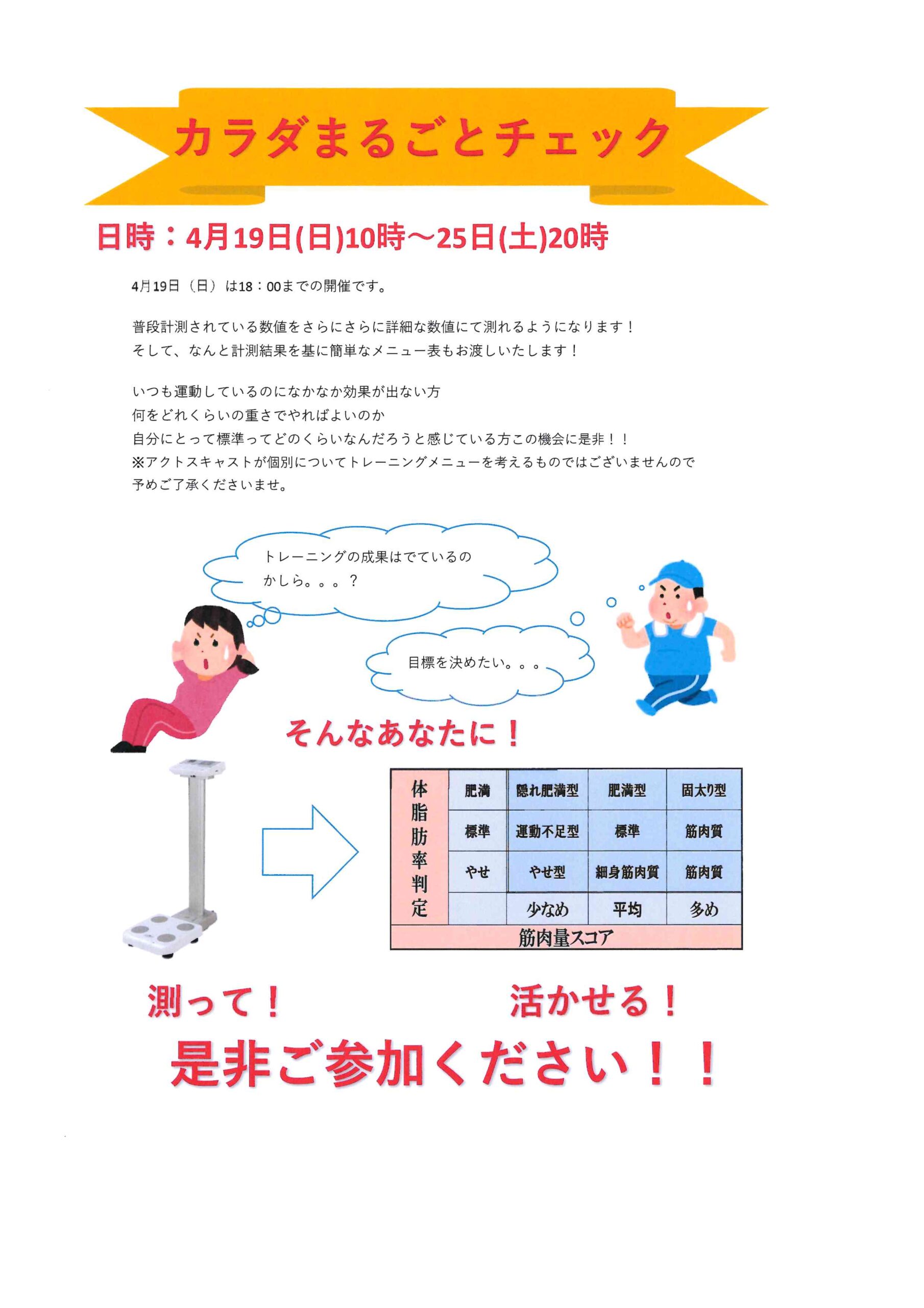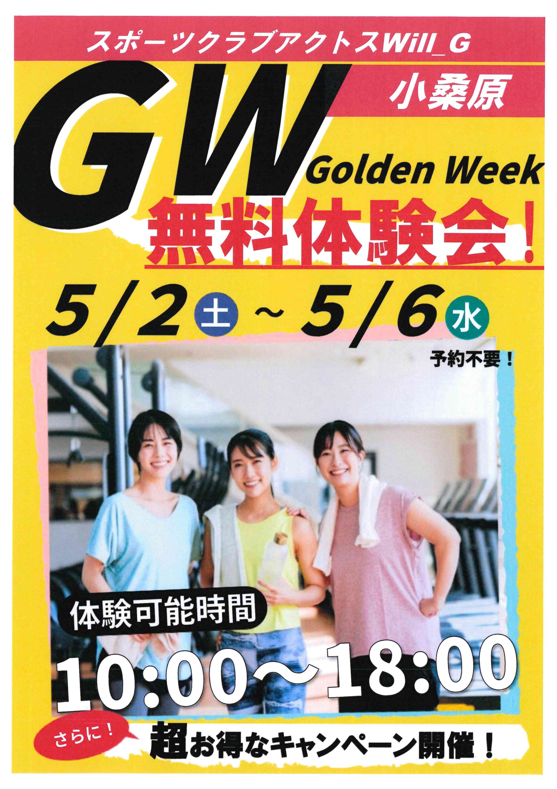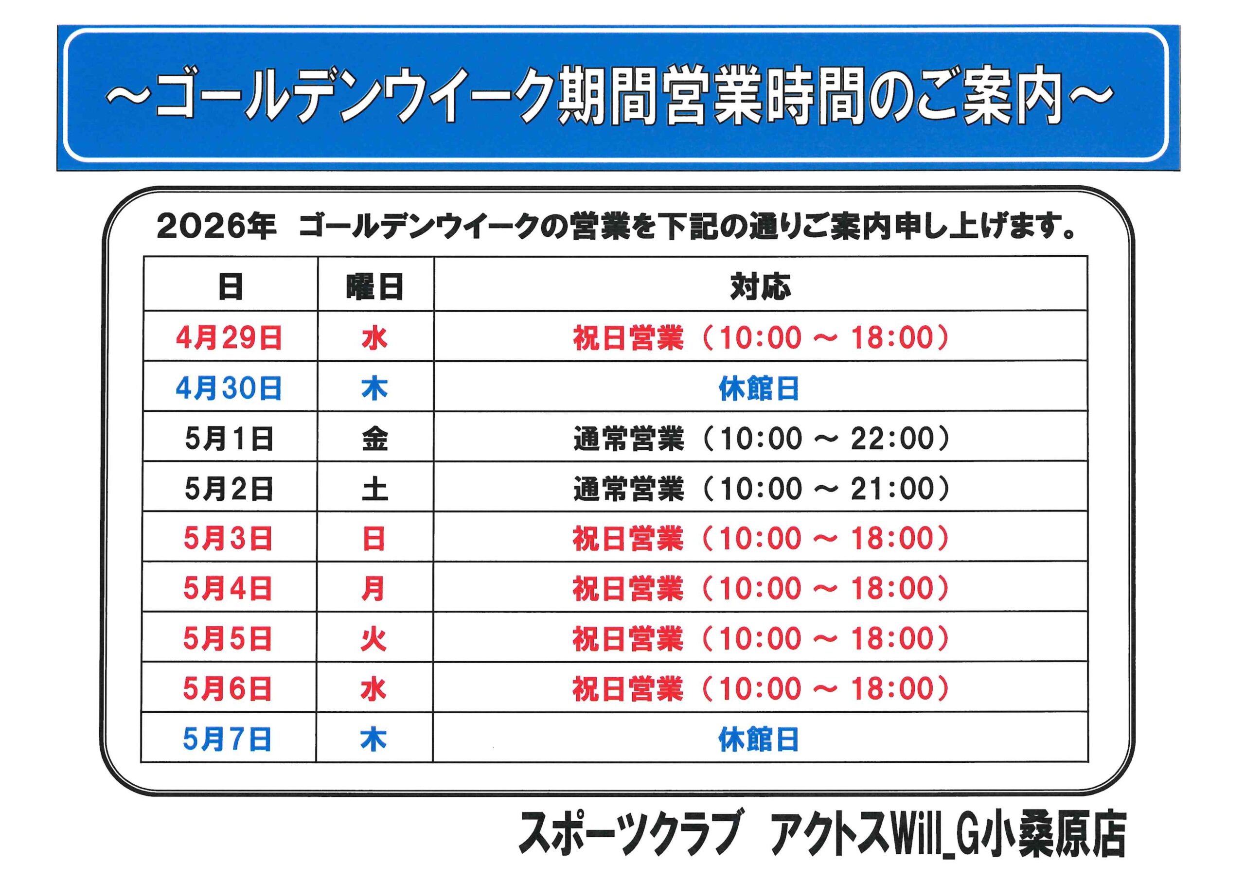 運動しやすい衣服、シューズ、タオル等はご準備ください。※休館日は体験いただけません。