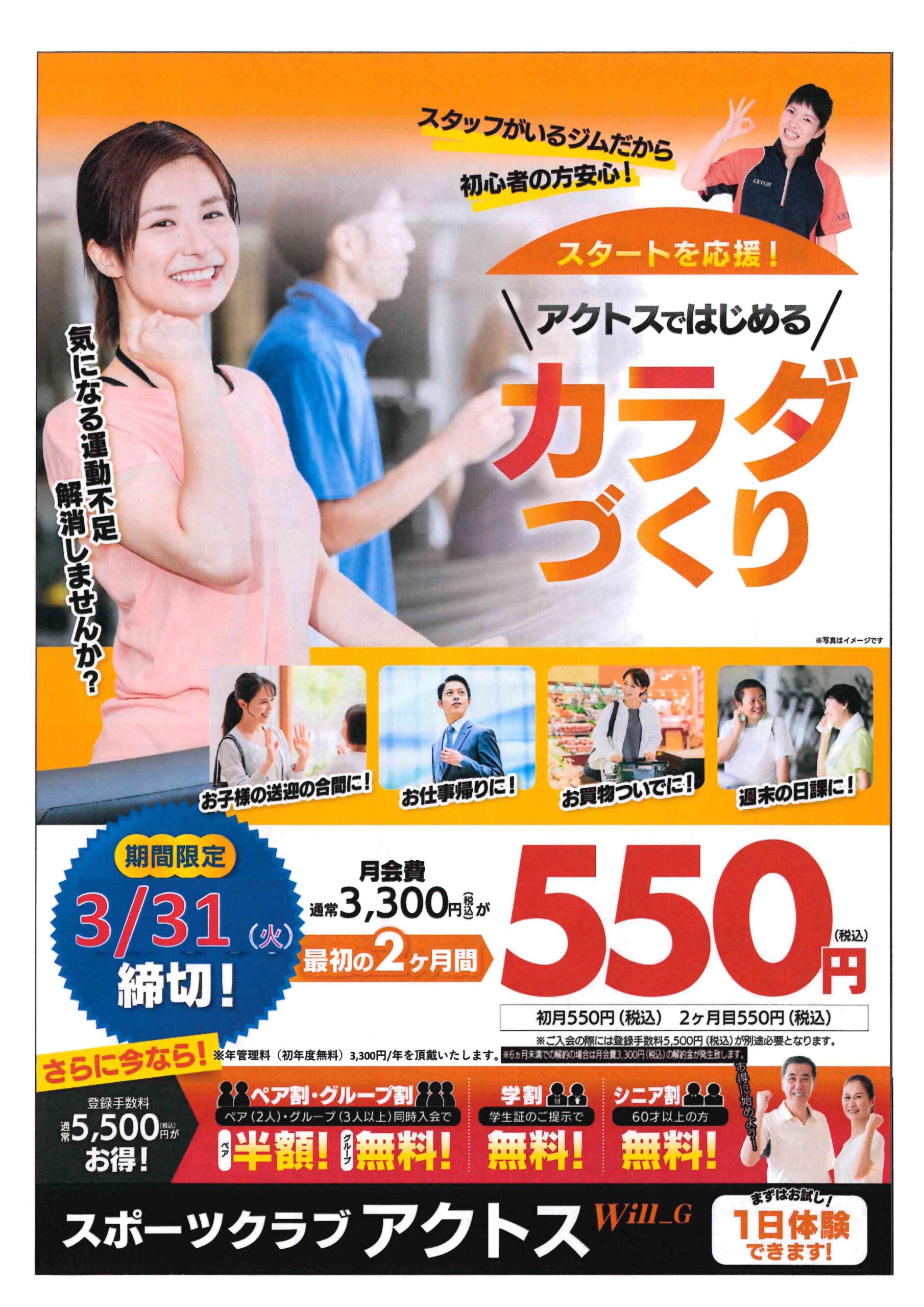 - ◆アクトスをご利用の場合 4,400円(税込)/回