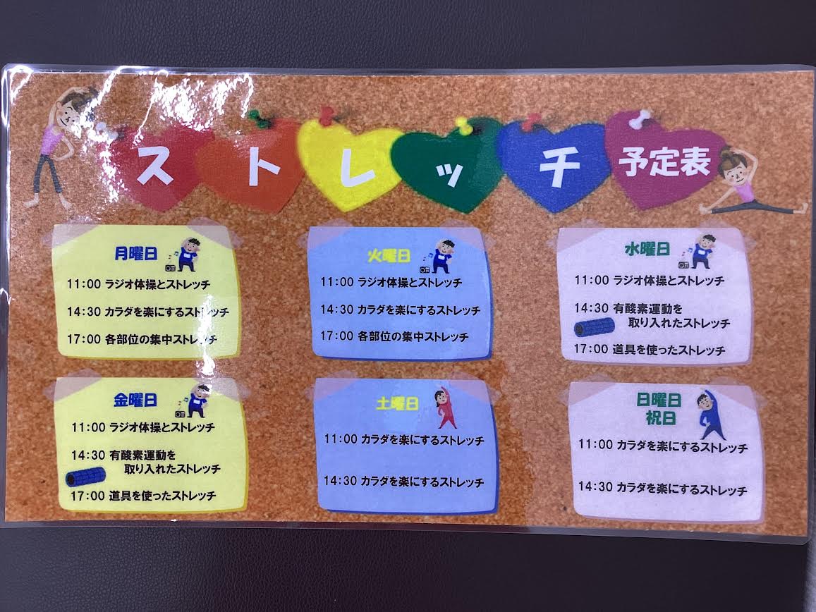 毎日定時のストレッチタイム♪運動前後に是非ご参加下さい!