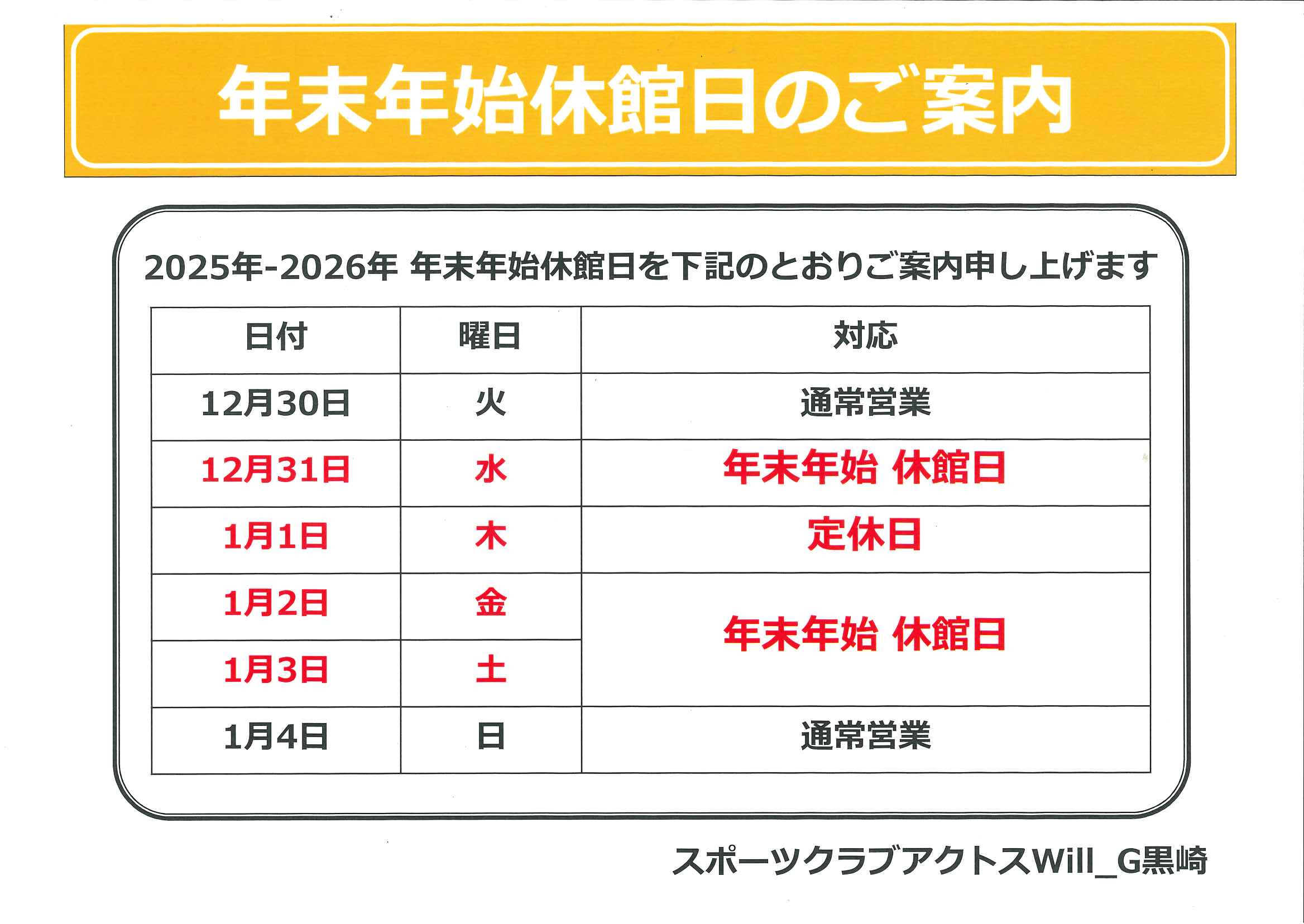 年内は12月30日まで営業します