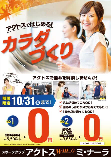 運動しやすい衣服、シューズ、タオル等はご準備ください。※休館日は体験いただけません。