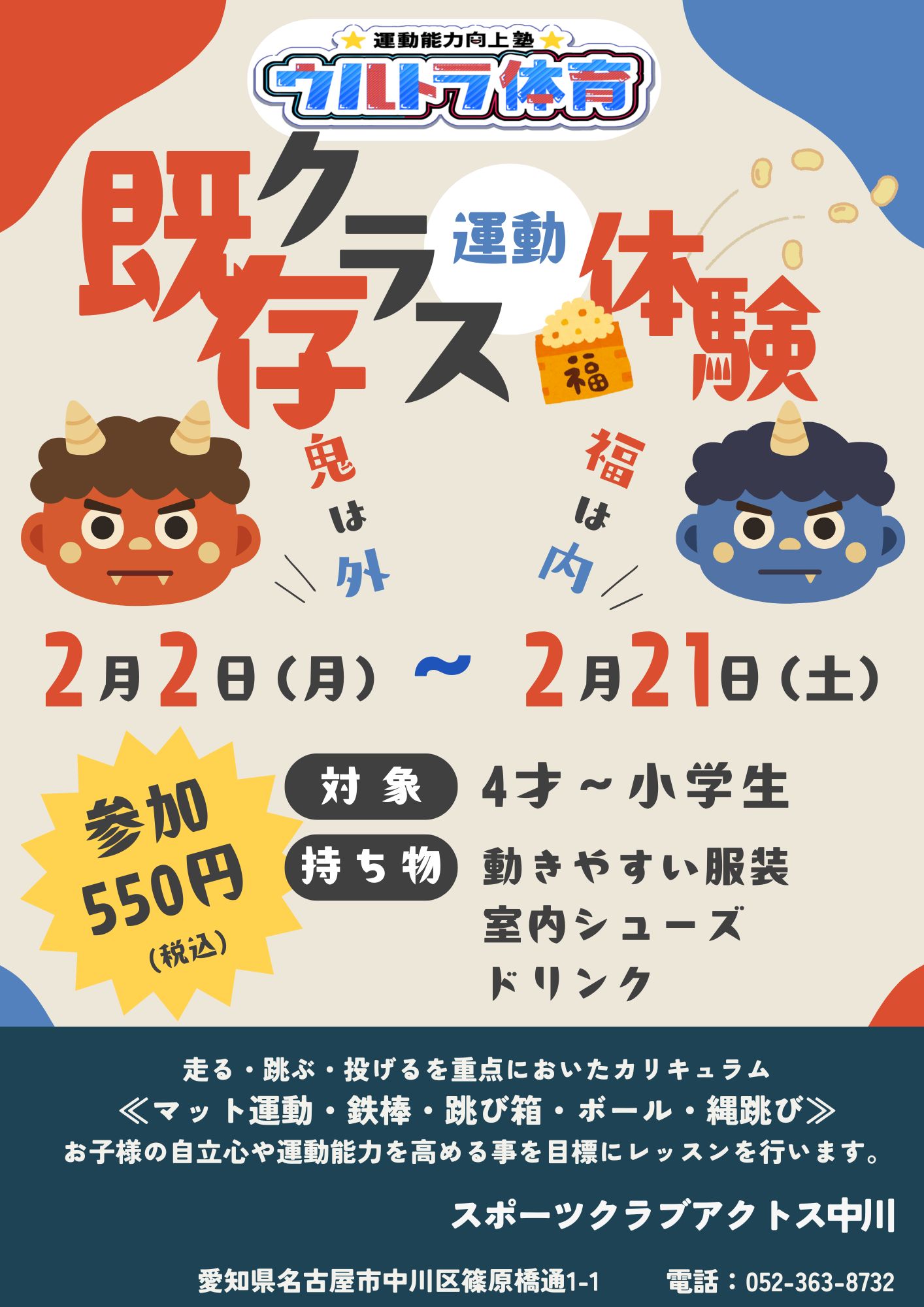 多種多様な運動を体験し、基礎的な運動能力向上を目指します。