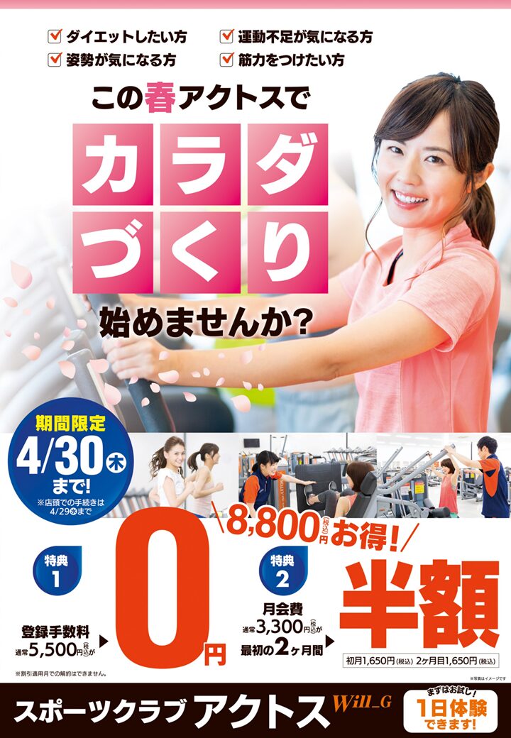 - ◆アクトスをご利用の場合 4,400円(税込)/回