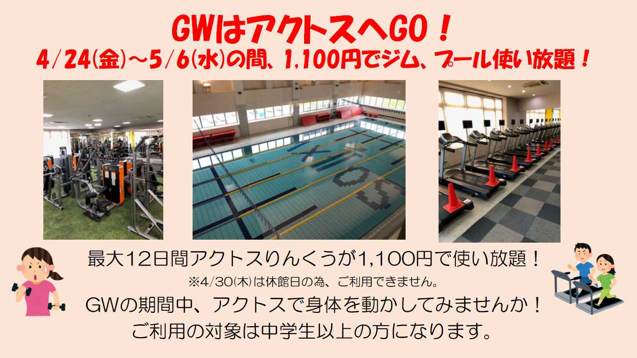 ●アクトス全店が月会費のみでご利用いただけます (他店舗利用料金550円(税込)は必要ありません)。