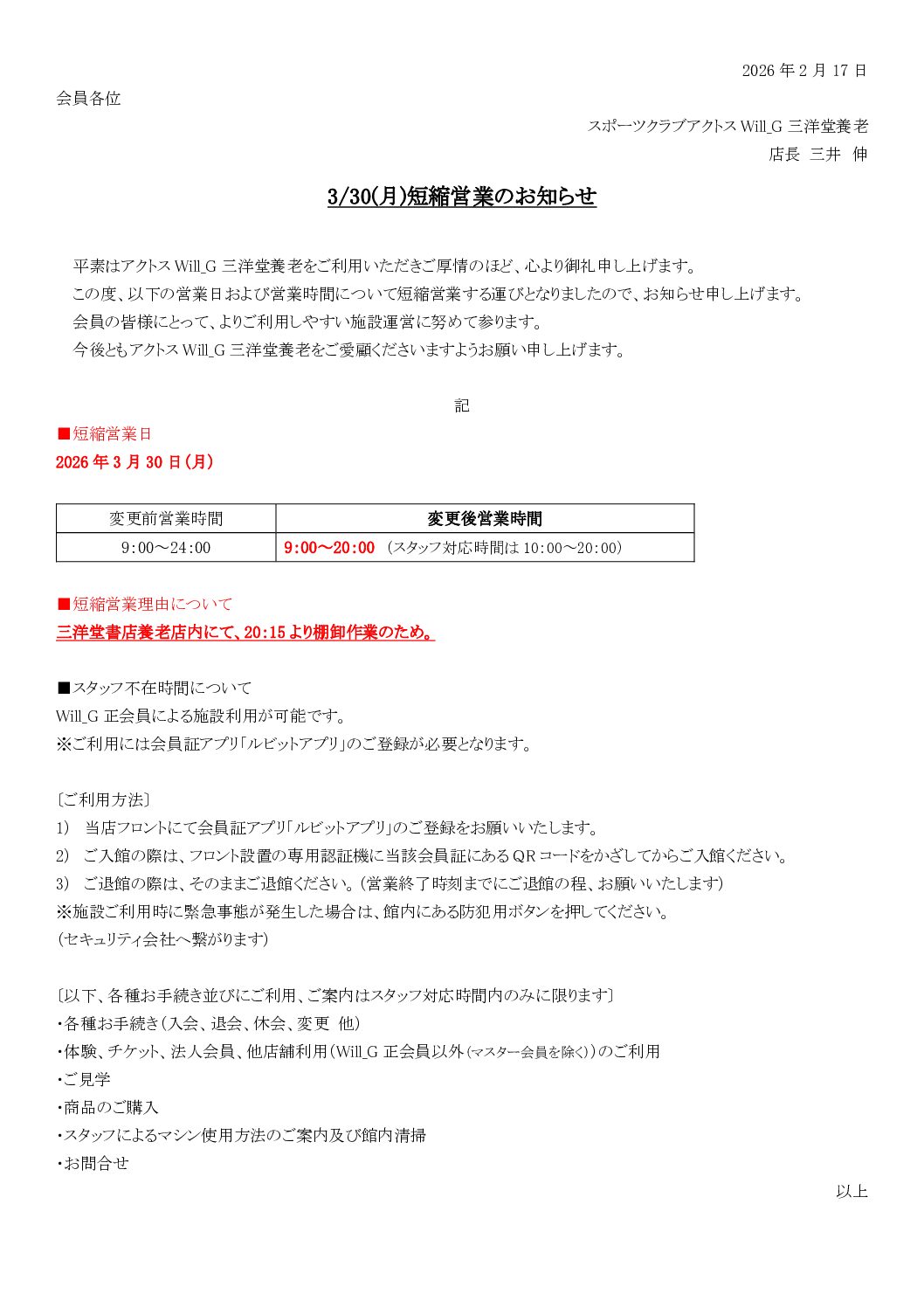 ※スタッフ対応時間以外は、Will_G正会員の方のみのご利用に限ります。