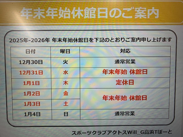 ※「12月31日から1月3日まで」休館させて頂きます