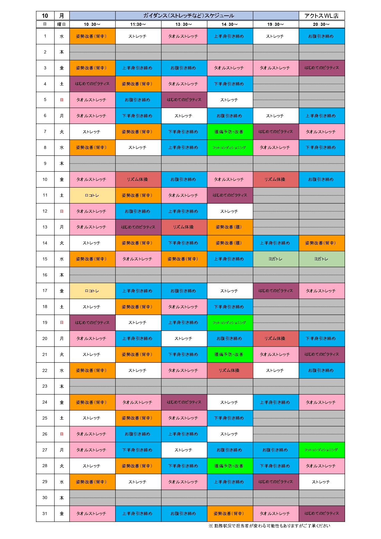 運動しやすい衣服、シューズ、タオル等はご準備ください。※休館日は体験いただけません。