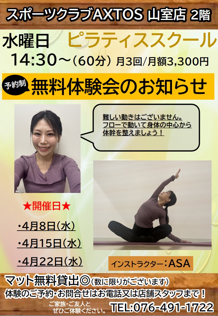 「始めやすい、続けられる」低価格が魅力。アクトスWill_Gのヨガ・ピラティススクール。