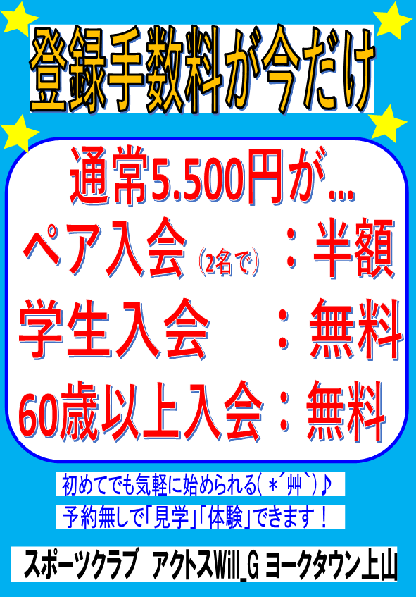 運動しやすい衣服、シューズ、タオル等はご準備ください。※休館日は体験いただけません。