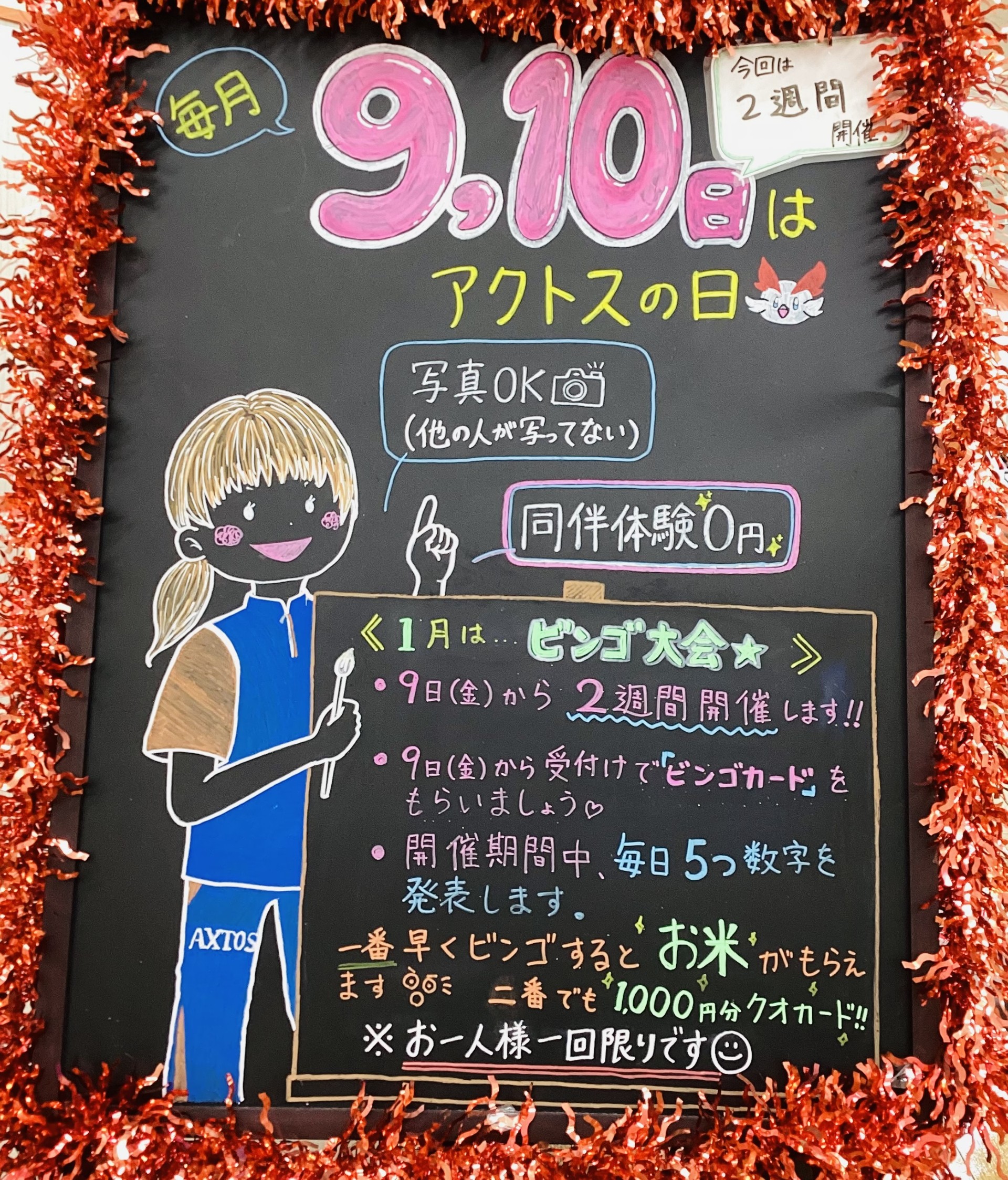 サポートプログラムとしてガイダンス、タオルストレッチ、 トレーニングレッスン等、様々なイベントがございます。 お客様同士、キャストと一緒に頑張りましょう
